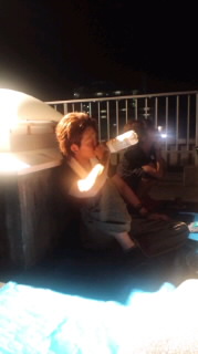 花笠まつりのBGMをききながら 屋上で恒例のビアガーデン 代は満足じゃ!